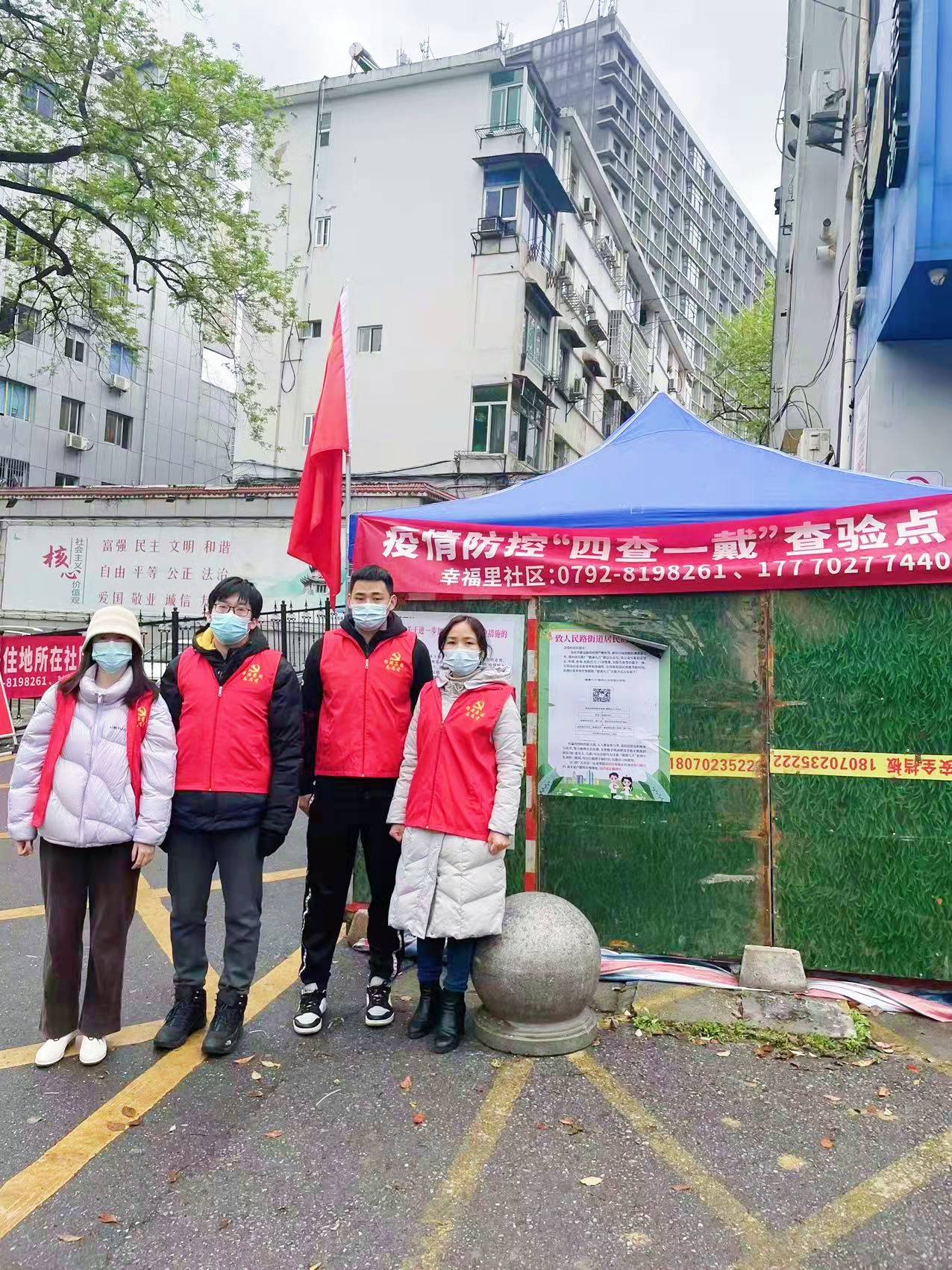 当前,国内疫情多点散发,江西多地发生输入性疫情,防控形势十分严峻。风险就在身边,防控刻不容缓。为进一步响应落实市委、市政府和市国资委有关疫情防控部署要求,九江国有保安集团迅速组建疫情防控党员先锋队,发挥党员先锋作用,第一时间把党旗插在社区防疫一线,主动在疫情防控一线“亮身份、亮承诺、比作为”,对进入责任区的对象,车必拦、人必查,反复确认其状况和基础信息,全力做好“四查一戴”、身份筛查等工作,坚决打赢疫情防控阻击战。