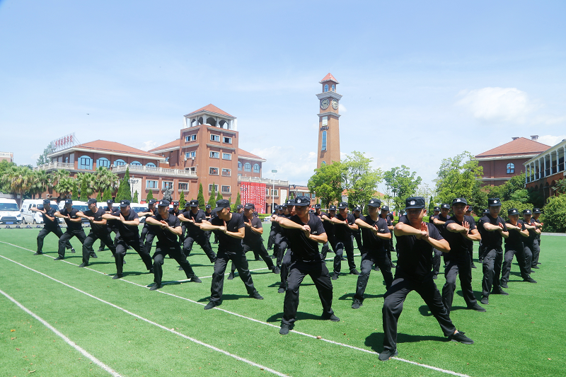 夏日磨斗志,淬火正当时。“喜迎二十大,保安护平安。纪律严明、操作规范、服务至上、安全高效,不忘初心跟党走、牢记使命勇担当……”似火骄阳,一浪高过一浪的铮铮誓言铿锵有力,在操场上空回荡着。押运队员和人防队员们身着执勤服,在操场中央整齐列队,口号洪亮,步调一致,高质量完成队列基本功。当擒敌拳方阵出场时,那嘹亮的呼喊,威武有力的动作,瞬间点燃现场的气氛。队员们精神抖擞,充分展示了九江国有保安集团队伍过硬的业务素质。