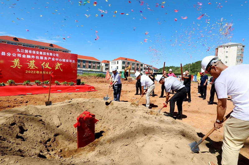 盛夏骄阳,烈日炎炎,然而比夏日更火热的是九江国有保安集团有限公司彭泽县分公司金融外包服务产业中心基建项目工地。8月6日,金融外包服务产业中心基建项目奠基仪式在工地现场圆满举行。集团公司党委书记、董事长方东森,副总经理王志勇等领导出席活动并为项目培土奠基。