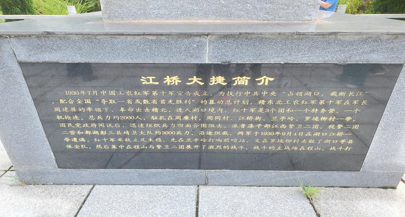 1930年7月,时任赣东北工农红军第十军在军长周建屏将部队集结在湖口县江桥一带,准备夜袭湖口县城。9月4日,红十军在江桥与敌人展开激战,历时七八小时,红军取得生俘敌团长张超,缴获许多新式武器及大批军用物资,后称“江桥大捷”。