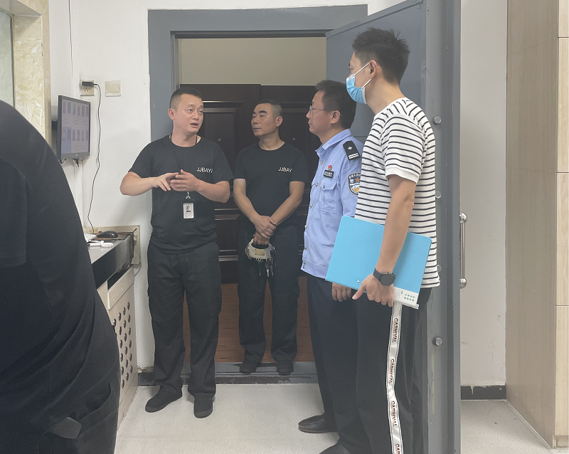 为进一步强化枪支弹药的安全监管,维护国庆、“二十大”期间治安环境的安全稳定,严防各类生产安全事故发生,9月27日,市公安局治安支队三大队乔政阳警官和浔阳分局治安大队万强警官来到九江国有保安集团押运分公司开展节前安全检查工作。