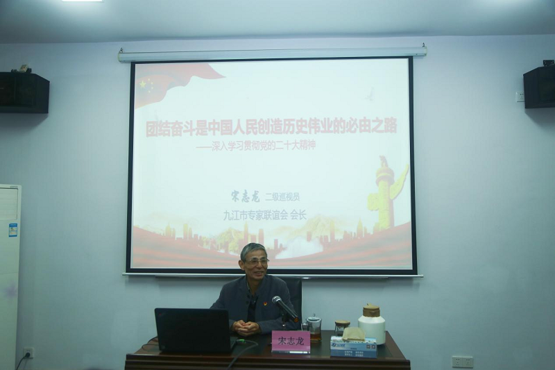 宋志龙以《团结奋斗是中国人民创造历史伟业的必由之路——学习党的二十大报告精神》为主题,从“团结奋斗”这一贯穿二十大报告的主题词着手,围绕“牢牢把握团结奋斗的时代要求、团结奋斗创造历史的成功密码、奋斗创造新的伟业的行动方向”三个方面作了深刻阐释和全面解读,深入浅出地阐述党的二十大精神的丰富内涵和核心要义。他指出团结奋斗是中国共产党和中国人民最为显著的精神标识,是中国共产党百年光辉历程的主旋律,党的百年历史,就是一部党领导人民团结奋斗、赢得伟大胜利的历史。只要在党的领导下,全国各族人民团结一心,众志成城,我们就一定能够战胜前进道路上的一切困难挑战。