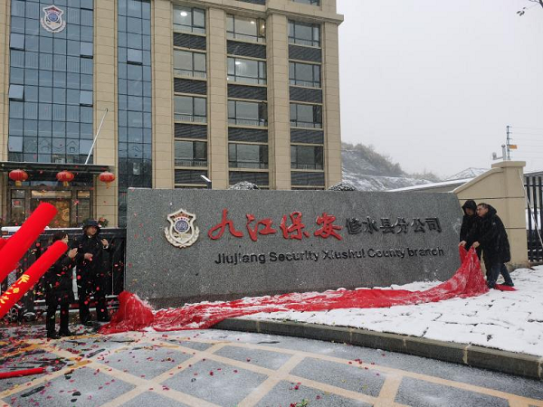 2023年1月15日,九江国有保安集团有限公司修水县分公司迁址揭牌仪式隆重举行,出席本次活动的嘉宾有修水县政府副县长、县公安局党委书记、局长龚浙江,县公安局副局长巢小虎,修水九银村镇银行赵行长,分公司党支部书记、经理余李健以及分公司全体同仁。