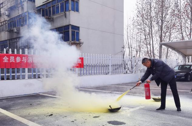 疏散环节结束后,演练进入消防器材实操培训阶段。在安全专业人员的详细讲解和规范示范下,参训人员系统学习了干粉灭火器的类型区分、日常检查要点及“提、拔、握、压”操作要领,并分批次进行了灭火实操。