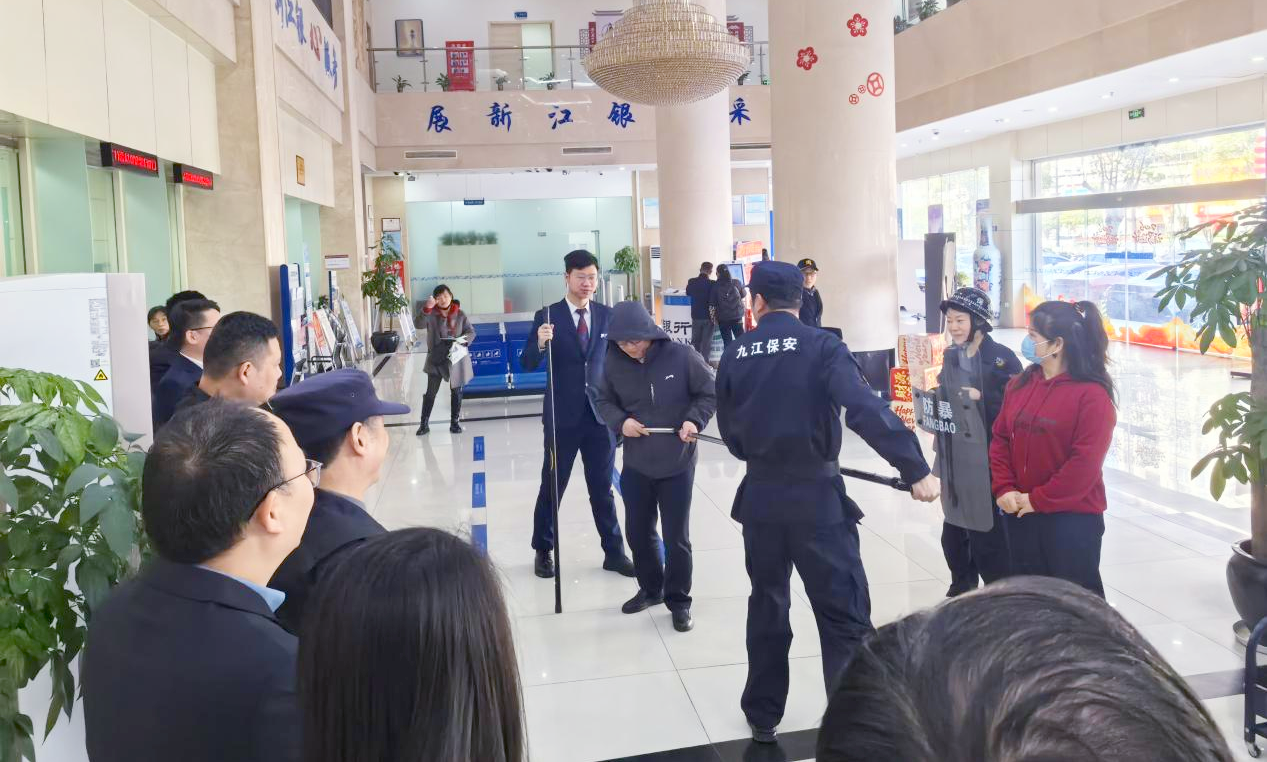 为切实筑牢金融网点安全防线,提升驻点安保人员与银行员工应对突发暴力事件的快速响应、协同处置能力。3月13日,九江国有保安集团人防服务公司联合江西银行九江分行,开展应急突发事件防暴实战演练。