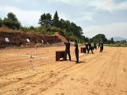 6月14日上午 武宁县分公司在茶山野外打靶场,举行了一年一度的实弹射击训练,参加训练的25名守押人员及办公室人员,由分公司统一组织,县公安局治安大队现场监督指导。