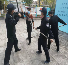 几名“歹徒”手持刀具及钢管准备闹事,以至升级对人身攻击,正值巡逻保安人员发现后,立即报警并及时招呼应急突击队员赶到现场支援。使用防暴设备控制“歹徒”,避免了一次流血事件的发生。