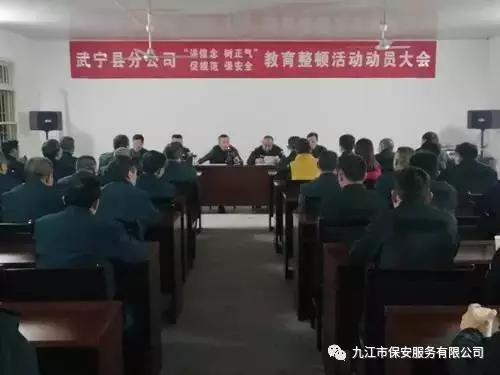 为提高保安员的综合素质,为客户提供更优质的服务, 3月31日 晚,武宁县分公司开展了“讲信念、树正气、促规范、保安全”教育整顿活动动员大会。公司保安员 、 押运员 、机关工作人员共58人参加会议