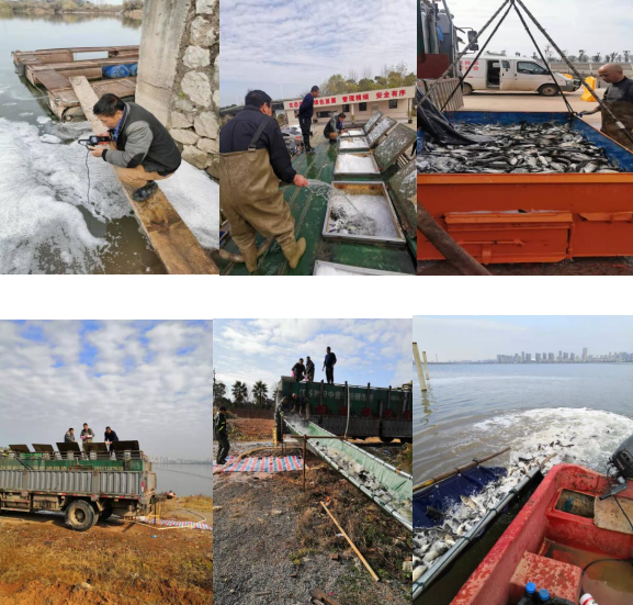 当天,工作人员冒着凛冽的寒风,将17666尾鱼苗缓缓地投放到八里湖水中。本次放流品种为鱅鱼、鲢鱼、草鱼等,为八里湖生物多样化、净化水质等起到一定作用。他们按既定的鱼种投放操作流程,进行测温、换水、抽样等作业程序,苗种下湖前严格落实投放区域水体消毒及舱内消毒等步骤,实行精细化管理,确保苗种投放工作保质保量完成。