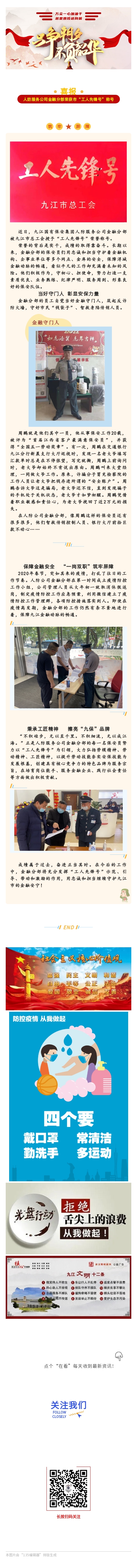 喜报!人防服务公司金融分部荣获市“工人先锋