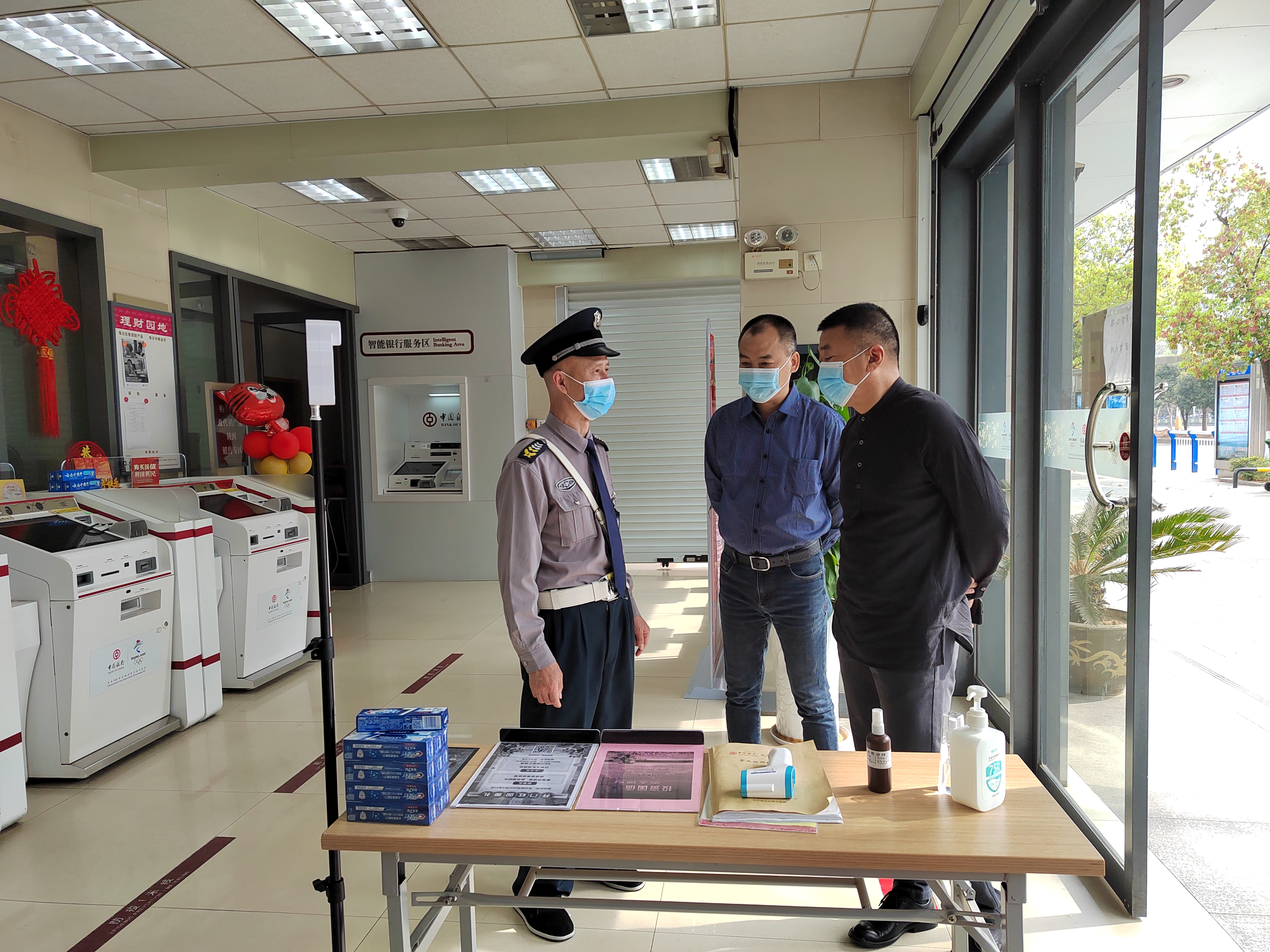 方东森一行每到一处带头扫码测温,仔细检查银行网点保安疫情防控工作贯彻执行情况,详细了解小区门岗值班值守、进出人员及车辆排查、环境消杀等情况,对检查中发现的问题进行现场整改。