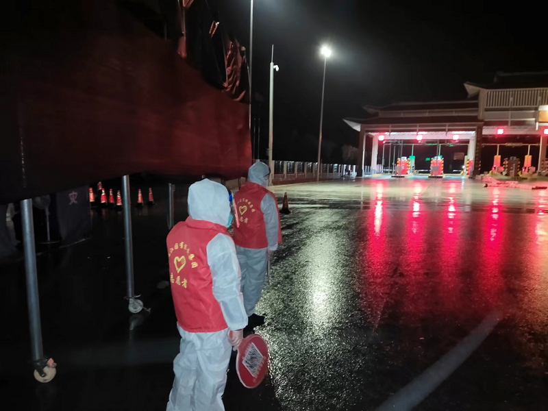 我们的疫情防控地是赣粤高速彭泽西出口,车流量大,防疫任务艰巨。时值严冬,彭泽西高速出口多是风口。11月29日晚,彭泽县雨夹雪,温度骤降至零度,大家舍小家顾大家,弃家离子,冒着寒冷,坚守岗位,认真排查、登记过境的每一车、每一人,严防死守,不留死角,充分发挥了共产党员先锋模范作用。为打赢疫情防控阻击战,保卫一方百姓保驾护航,用实际行动诠释了新时代共产党员的奉献精神和职责使命。
