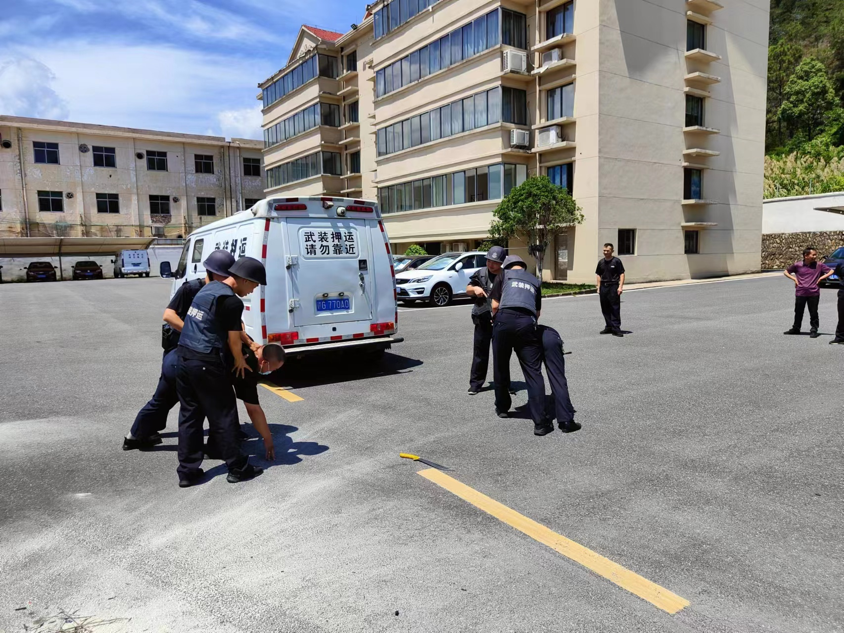 此次演练由分公司经理夏志慧组织并现场指挥,演练持续了1个小时。押运中队长林凌为公司员工讲解了应对盗抢突发事件的注意事项和动作要领,并讲解了消防器材的使用方法,而后逐个队员进行现场演习。