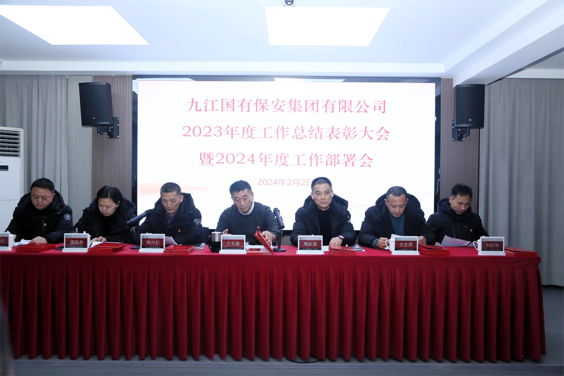 2月2日下午,九江国有保安集团召开2023年度总结表彰大会暨2024年度工作部署会,回顾总结2023年度集团奋进历程,安排部署2024年任务目标。集团党委书记、董事长方东森出席会议并讲话。集团公司班子成员出席会议,各部门子(分)公司负责人、先进集体和先进个人代表参加会议。