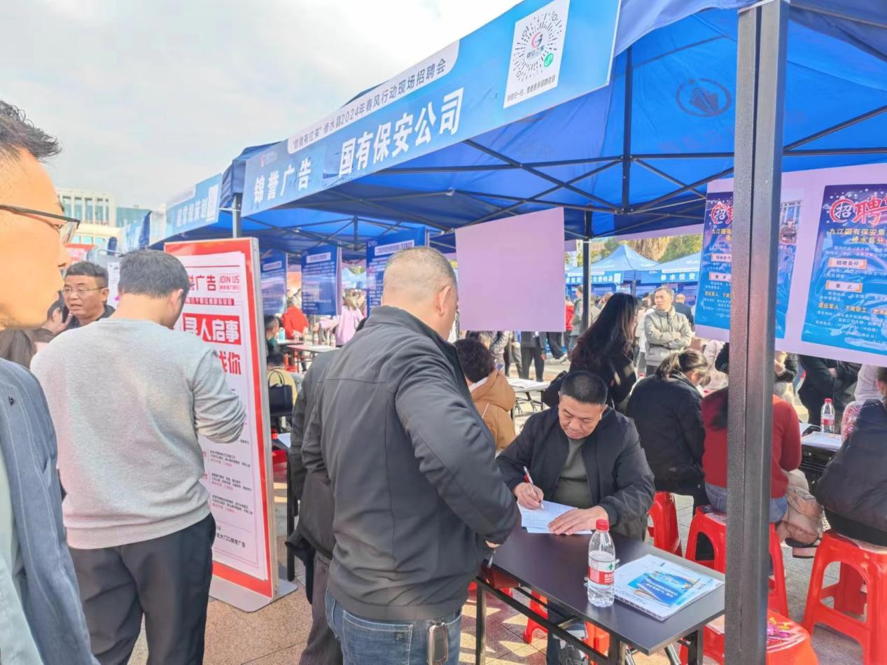 2月19日,修水县春风行动招聘会“春风送岗促就业,精准服务助发展”招聘活动在县政府广场举行。为助力安保行业发展,集团修水县分公司亮相招聘会,吸引了众多求职者的关注。