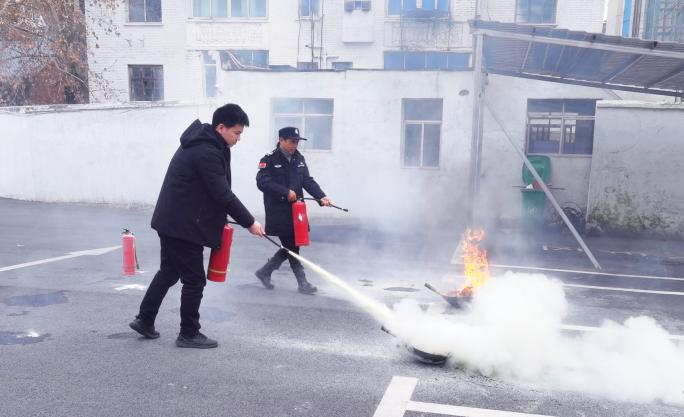 疏散环节结束后,演练进入消防器材实操培训阶段。在安全专业人员的详细讲解和规范示范下,参训人员系统学习了干粉灭火器的类型区分、日常检查要点及“提、拔、握、压”操作要领,并分批次进行了灭火实操。