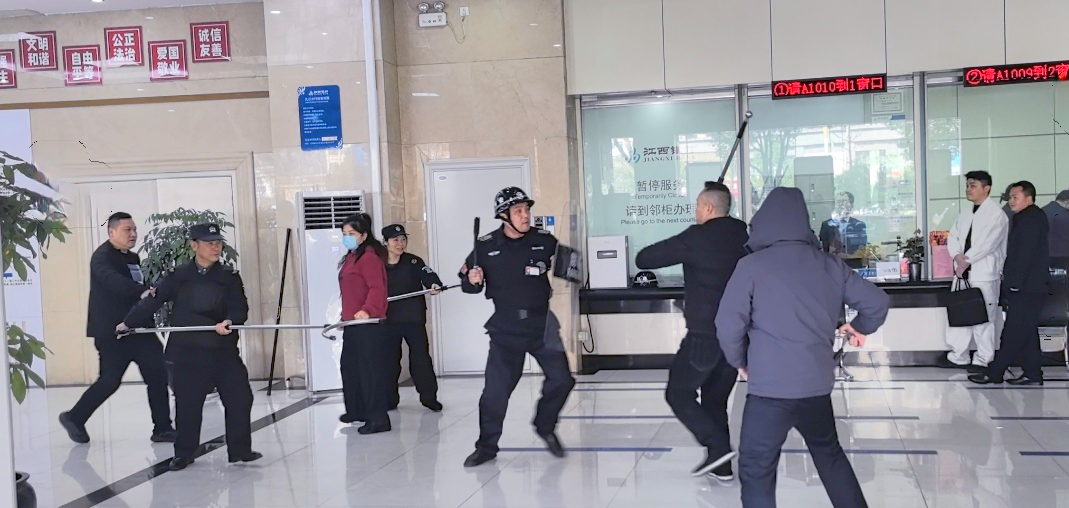 为切实筑牢金融网点安全防线,提升驻点安保人员与银行员工应对突发暴力事件的快速响应、协同处置能力。3月13日,九江国有保安集团人防服务公司联合江西银行九江分行,开展应急突发事件防暴实战演练。